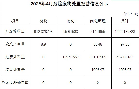 2025年四月危險(xiǎn)廢物處置經(jīng)營(yíng)信息公示