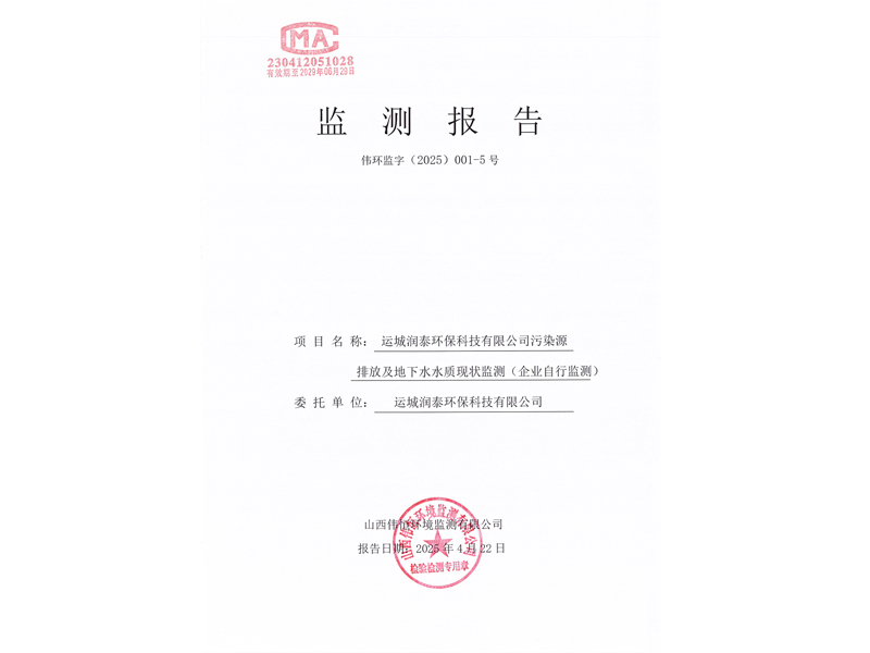 2025年潤(rùn)泰環(huán)保四月份自行監(jiān)測(cè)報(bào)告